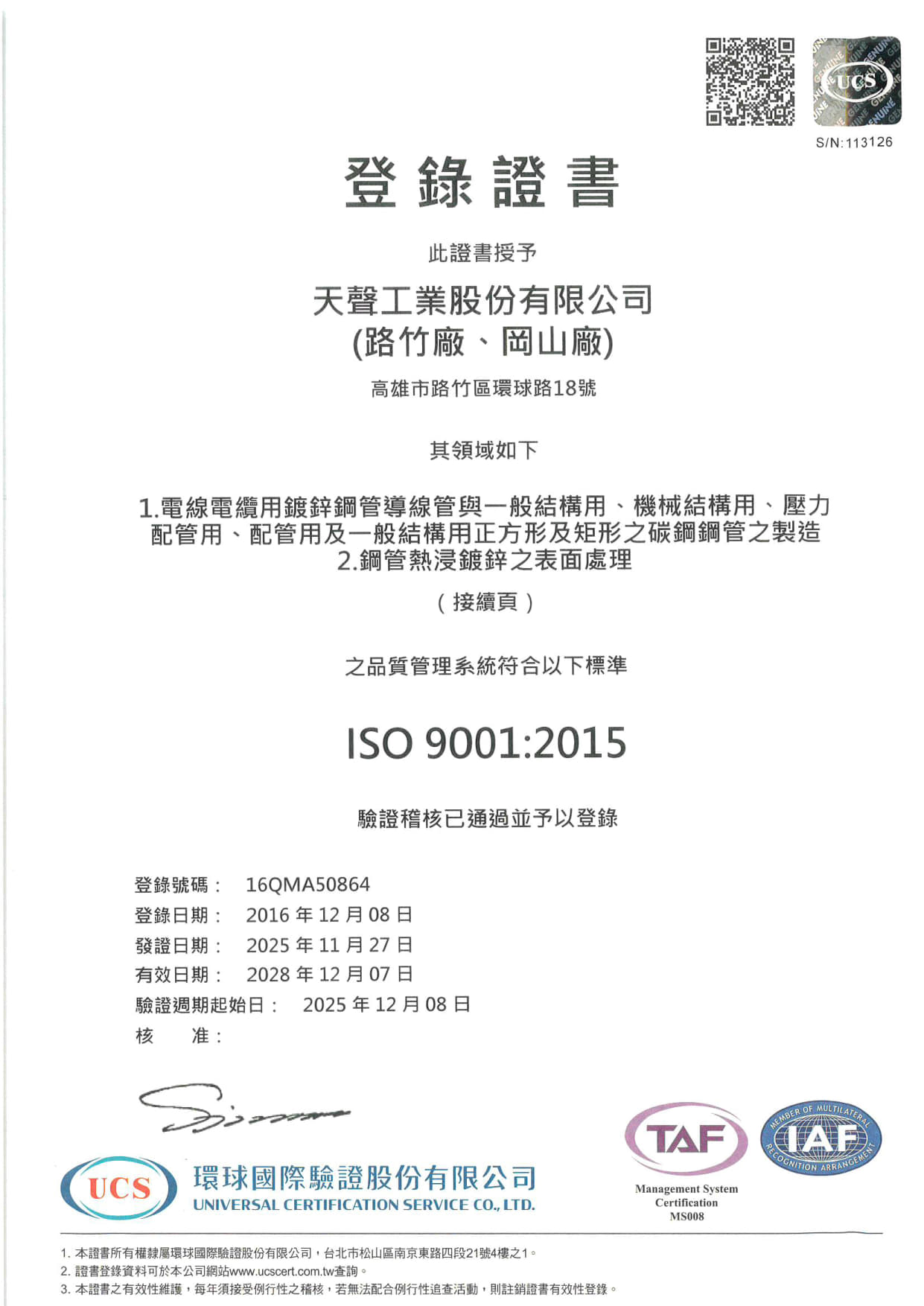 品質證書